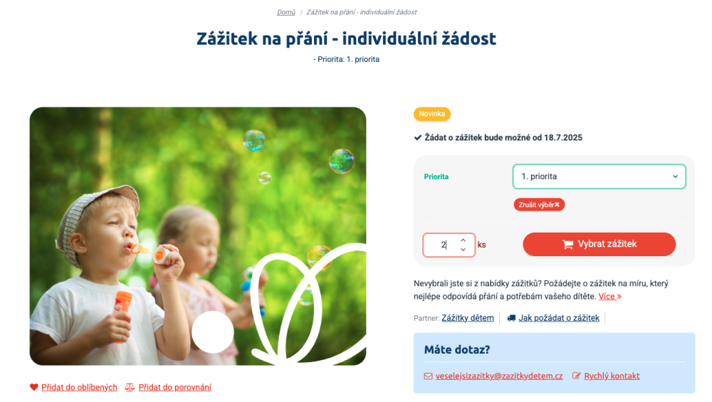 Prioritu zážitku (v případě, že žádáte o více zážitků)